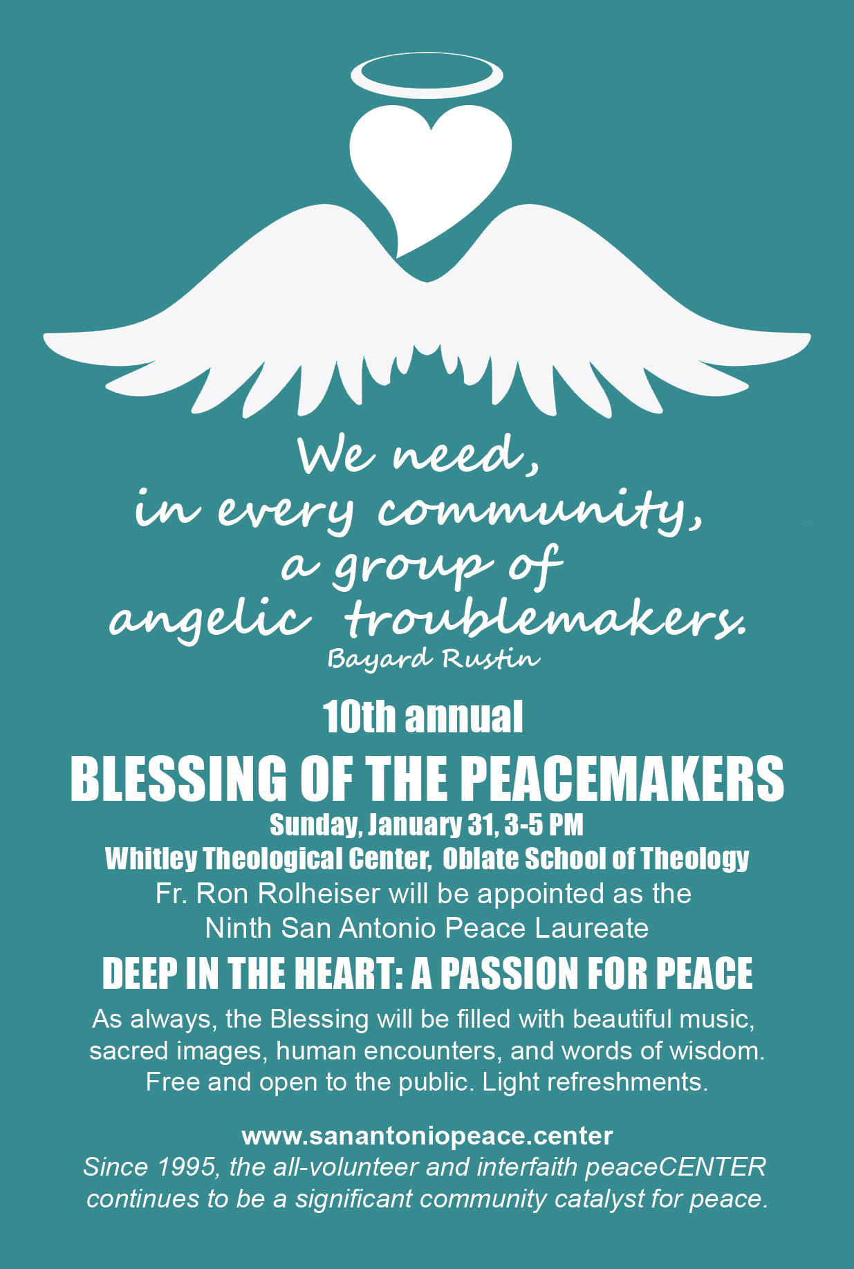 Blessing of the Peacemakers Sunday, January 31 by Susan | Jan 29, 2016 | Do Something | 0 comments Share this:TweetShare on TumblrLike this:Like Loading...
