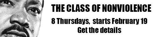 Over the course of eight weeks we will read 48 essays about peace, justice & nonviolence by classic thinkers and practitioners such as Mohandas Gandhi, Martin Luther King, Jr. and Dorothy Day. Through hands-on exercises, discussion, reflection and film, we will deepen our understanding of nonviolence and connect theory to current events. All of the readings are available free online at http://peacecenterbooks.com/the-class-of-nonviolence-index/; a limited number of printed books will be for sale during the first session for $10.